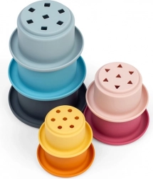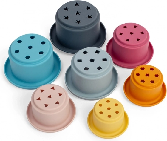 Silikónové stohovacie kelímky BIGJIGS TOYS sú univerzálna hračka do vody, na pláž aj do detskej izby. Sedem rôzne veľkých kelímkov možno skladať na seba aj do seba a vďaka perforovaným dnám si deti užijú zábavné prelievanie a špliechanie s efektom malého vodopádu.