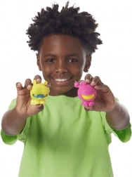 Každé balenie obsahuje 1 glow-in-the-dark figúrku a ďalšie dve v náhodných farbách a tvaroch (napr. šteniatko, hroch, mačka či iné monštrá). Hračky sú skvelé na rozvoj jemnej motoriky, ukľudnenie a zlepšenie koncentrácie.