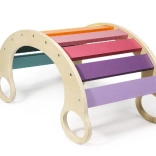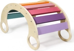 Elegantná montessori hojdačka s veselými farbami dúhy poteší malých zvedavých objaviteľov. Ponúka multifunkčné využitie na sedenie, lezenie aj hojdanie, trénuje motoriku, rovnováhu a koordináciu a vďaka kompaktným rozmerom sa hodí do každého interiéru. Maximálna nosnosť 75 kg, stabilná drevená konštrukcia a 4 praktické madlá pre bezpečný úchop.