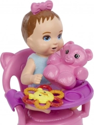 - Vyberte si jednu z troch tematických sád: čas jedla a kúpania s dieťaťom meniace farbu, realistické lezenie a čas na jedlo a výmenu plienky s funkciou trávenia.