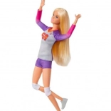 Oblečená do fialovo-šedého topu a šortiek, s číslom 59, táto bábika prináša módne i športové prvky.