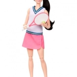 Bábika Barbie Kariéra Tenistka má celkom 22 kĺbov, čo umožňuje deťom stať sa súčasťou ich divokých športových fantázií. Oblieka športové oblečenie skladajúce sa z bieleho topu s modrými akcentmi a ružovej sukne, doplnený tenisovou čiapkou.