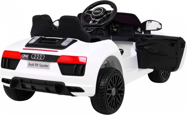Športová jazda pre malých vodičov v ikonickom štýle AUDI R8 Spyder. Autíčko je poháňané dvoma motormi 35 W a napájané dvojicou batérií 6 V/4,5 Ah, takže zvládne hladkú jazdu po pevnom povrchu aj záhradných chodníkoch. Plynulý rozjazd (Soft Start) chráni dieťa pred trhnutím a odpruženie prednej aj zadnej nápravy zvyšuje komfort.