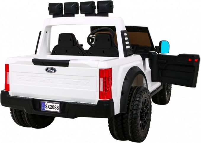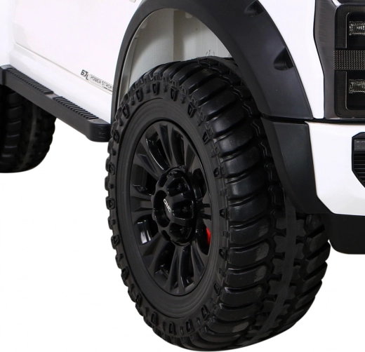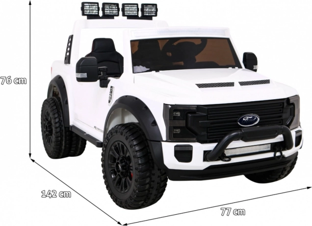 Tento veľký elektrický pick-up FORD Super Duty je stvorený pre dobrodružstvá. Vďaka pohonu štyroch kolies (4×45 W) a vysokej priechodnosti so svetlou výškou 17 cm zvládne dlažbu aj záhradu. Silná batéria 12 V 14 Ah predĺži zábavu na maximum a plynulý rozjazd zaistí komfortné a bezpečné štarty.