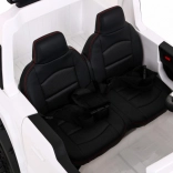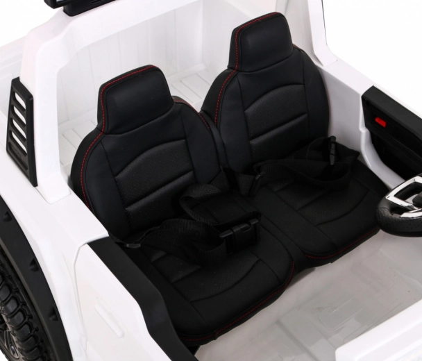 Komfort podčiarkujú sedadlá z ekokože s bezpečnostnými pásmi a trojstupňové nastavenie pre ideálne sedenie. Diaľkový ovládač 2,4 GHz ponúka 3 rýchlosti a tlačidlo STOP pre okamžité zastavenie. Bohaté LED podsvietenie karosérie, rámu aj interiéru, otváracie dvere a funkčný audiopanel (MP3/USB/AUX) vytvárajú realistický zážitok. Nechýba ani predné a zadné odpruženie pre hladkú jazdu.