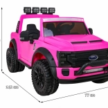 Veľký ružový pick-up Ford Super Duty je navrhnutý pre stabilnú a komfortnú jazdu detí. Štyri motory 45 W zabezpečujú plynulý rozjazd a dostatok sily, zatiaľ čo veľké kolesá EVA výborne tlmia nerovnosti. O bezpečie sa starajú bezpečnostné pásy, diaľkový ovládač s funkciou STOP a otváracie dvere pre ľahké nastupovanie.