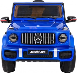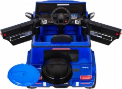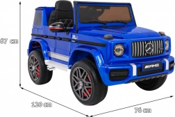 Luxusné detské elektrické autíčko MERCEDES-AMG G63 v lakovanej modrej farbe poteší realistickým vzhľadom, dvoma motormi 2×35 W, bateriou 12 V/7 Ah a diaľkovým ovládačom 2,4G so zastavením. Ponúka mäkké EVA kolesá, sedadlo z eko kože s pásmi, LED svetlá a bohatú multimediálnu výbavu (MP3/USB/SD/AUX, zvuky vo volante).