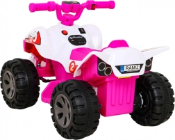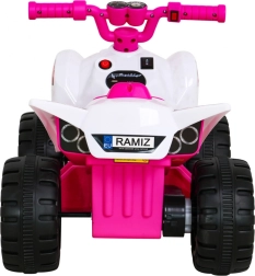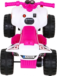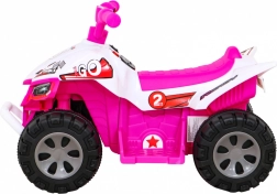 Štýlová detská štvorkolka na batériu v ružovo-bielom prevedení prináša bezpečnú zábavu pre najmenších jazdcov. Výkonný motor 25 W, akumulátor 6 V / 4,5 Ah a stabilné plastové kolesá zaistia plynulú jazdu dopredu aj dozadu. Ergonomické sedlo a jednoduché ovládanie plynom v rukoväti podporujú rozvoj motoriky a rovnováhy.