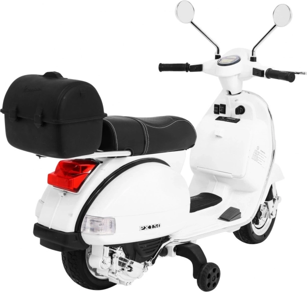 Doprajte vášmu dieťaťu nekonečnú jazdu plnú zábavy s elektrickým detským skútrom Vespa v bielej farbe. Tento detský skúter sa pýši realistickým dizajnom a bezpečnými pomocnými kolieskami, čo ho robí ideálnym pre začínajúcich jazdcov.