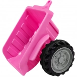 Veľké plastové kolesá s výrazným dezénom zaisťujú stabilitu na pevnom povrchu, dlažbe aj záhradných chodníkoch. Ľahké šasi s maximálnou nosnosťou 25 kg a komfortné sedadlo sú prispôsobené malým jazdcom. Príves rozvíja kreatívnu hru – deti môžu prevážať hračky či drobnosti zo záhrady.