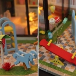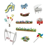 Táto elegantná miniatúra domčeka ponúka bohato vybavené interiéry – spálňu, obývaciu časť aj kuchynku – a vonkajšiu zónu s ihriskom. Vďaka precízne spracovaným detailom, nábytku a doplnkom vytvoríte pôsobivú scénu na vystavenie aj imaginatívnu hru. Inštalované LED osvetlenie dodáva večerom útulnú atmosféru (2× AAA nie sú súčasťou).