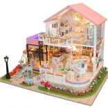 Dvojpodlažná vila so spálňou, obývačkou a kuchyňou v jemných farbách očarí bohatou výbavou a realistickými doplnkami.