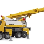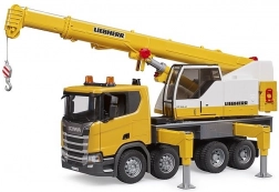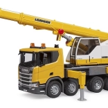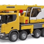 Tento detailne spracovaný model mobilného žeriavu v mierke 1:16 kombinuje kabínu SCANIA a žeriav LIEBHERR pre maximálne verný zážitok. Žeriavové rameno možno plynulo vysúvať a zaistiť do výšky, pri plnom vysunutí dosahuje úctyhodných 130 cm. Stabilitu zabezpečujú individuálne nastaviteľné a otočné výsuvné podpery a praktické protizávažie, ktoré možno naplniť pieskom či štrkom.