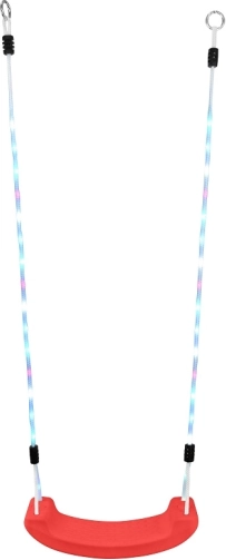 Táto kvalitná detská hojdačka 2Kids Toys v červenej farbe prináša bezpečné hojdanie a vizuálne efekty vďaka LED osvetleným lanám s viacerými svetelnými režimami. Ovládanie je jednoduché pomocou priloženého diaľkového ovládača, takže ľahko prispôsobíte atmosféru každej hre.