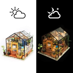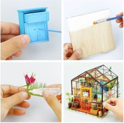 Miniatúrny skleník od ROBOTIME je detailná výtvarná stavebnica, s ktorou si užijete príjemné chvíle tvorenia a vytvoríte si útulnú dekoráciu s LED osvetlením. Balenie obsahuje všetko potrebné na zostavenie – lepidlo, farby, štetec a drobné nástroje. Model vyniká bohatými detailmi, reálnym vzhľadom a relaxačným zážitkom zo stavby.