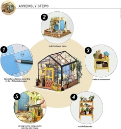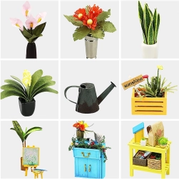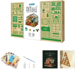 Objavte čaro miniatúr s modelom Robotime Mini Skleník. V krabici nájdete predrezané diely z preglejky, papierové potlače, látkové a kovové prvky, ktoré po nafarbení a zlepení vytvoria pôsobivý skleníček plný rastliniek a záhradných doplnkov. LED osvetlenie dodá hotovému modelu teplú a útulnú atmosféru.
