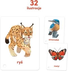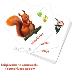 Karty obrazové na šnúrke: Zvieratá sú určené pre rôzne vzdelávacie aktivity. Hra s týmito kartami rozvíja slovnú zásobu, pamäť, pozornosť a kreativitu dieťaťa. Kompaktné rozmery (11 x 13,5 x 4,5 cm) činí sadu ideálnou pre použitie doma aj na cestách. Trvanlivý kartónový materiál zabezpečuje dlhú životnosť kariet.