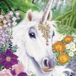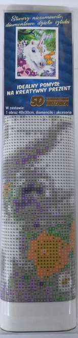 Diamantové maľovanie je jedinečný spôsob relaxu aj tvorenia. S motívom jednorožca v kvetoch si vyrobíte trblietavý obraz, ktorý môžete po dokončení zarámovať a vystaviť. Postup je jednoduchý: pomocou pera a vosku lepíte farebné kamienky na označené miesta na plátne.