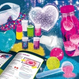 V balení nájdete všetko potrebné na tvorbu krásnych a voňavých výrobkov: trblietavé kúpeľové bomby, dekoratívne srdiečka a vlastnoručne vyrobenú svietiacu lampičku s trblietkami. Každý experiment je vysvetlený krok za krokom a doplnený teóriou, aby deti pochopili, čo a prečo sa deje.