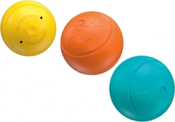 Tri loptičky rôznych veľkostí putujú po farebných šmykľavkách a končia za správnymi dvierkami – ideálne na tréning farieb, triedenia a logického uvažovania.