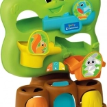 Kúzelný strom premení učenie na zábavu. Deti vhadzujú tri farebné loptičky rôznych veľkostí, sledujú ich jazdu po šmykľavkách a objavujú správne dvierka podľa farby. Veselé farby, milé postavičky vtáčikov a rôznorodé mechanické prvky prirodzene rozvíjajú jemnú motoriku, zrakové vnímanie a trpezlivosť.