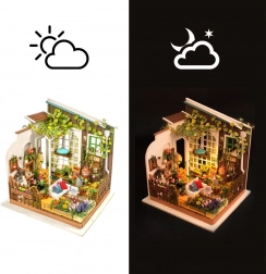 Táto prepracovaná DIY miniatúra premení váš voľný čas na príjemný tvorivý zážitok. Stavebnica obsahuje predrezané diely z preglejky, papierové potlače, textilné a kovové prvky, farby aj lepidlo. Vďaka LED osvetleniu vyniknú všetky detaily a hotový model sa stane štýlovou dekoráciou na poličku či do pracovne.