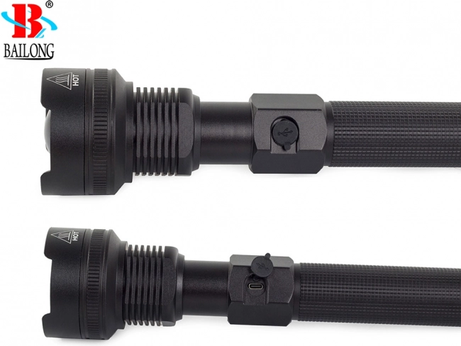 Výkonné taktické svietidlo BAILONG s diódou CREE XHP70 pre spoľahlivé osvetlenie v teréne aj doma. Ponúka dosvit až 1000 m, plynulý zoom, 3 svetelné režimy, robustné telo z leteckého hliníka s ochranou IPX5, USB nabíjanie, napájanie 2× 26650 a LED indikáciu stavu nabitia.