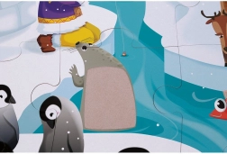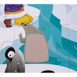 Vstúpte s deťmi do fascinujúceho sveta za polárnym kruhom. Toto hmatové puzzle spája radosť zo skladania s objavovaním rôznych textúr – niektoré dieliky majú špeciálne povrchy, ktoré podnecujú hmat a pomáhajú deťom spoznávať polárne zvieratá nielen očami, ale aj dotykom.