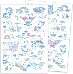 Dočasné tetovanie DJECO s motívmi jednorožcov je ideálnou voľbou na detské oslavy, karneval aj každodennú zábavu. Deti si môžu ozdobiť ruky, tvár aj nohy veselými a jemnými obrázkami, ktoré boli dermatologicky testované na bezpečné používanie.