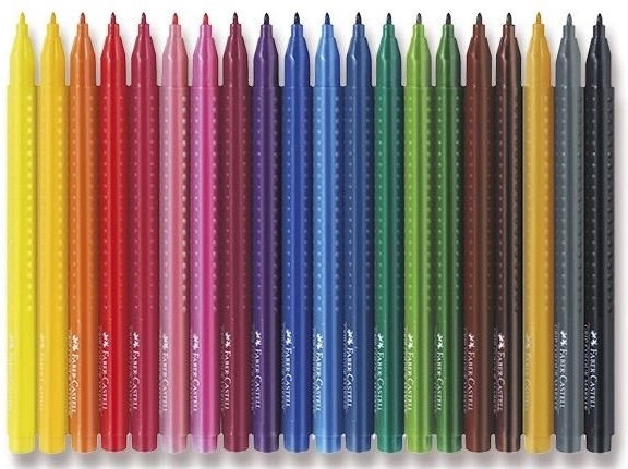 Sada fixiek Faber-Castell Grip je ideálna pre školákov, kreatívne deti aj dospelých. Vďaka ergonomickému trojhrannému tvaru a charakteristickej GRIP zóne s jemnými protišmykovými bodmi sa fixky pohodlne držia a prirodzene vedú ruku. Atrament na vodnej báze je sýty, žiarivý a možno ho ľahko vyprať z väčšiny bežných textílií.
