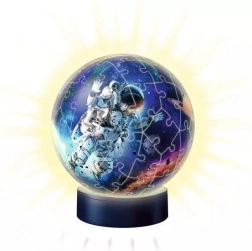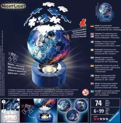 Vďaka nočnej edícii Nachtlicht od Ravensburgera môže mať očarujúcu svietiacu guľu s vesmírnym motívom aj vaše dieťa. Puzzle je veľmi obľúbené nielen vďaka jednoduchej manipulácii, ale aj stabilite. Na skladanie nepotrebujete lepidlo, špeciálne vyrobené zakrivené dieliky do seba jednoducho zapadnú a držia tvar. Skladať možno podľa obrázka alebo podľa čísel – plastové dieliky sú zo zadnej strany očíslované. Priemer puzzleballu je 13 cm. Balenie obsahuje: