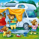 Toto praktické balenie obsahuje dve rôzne puzzle po 24 dielikoch, ideálne pre prvé krôčiky do sveta skladačiek. Vďaka kvalitným materiálom a presným výsekom sú dieliky odolné, dobre sa držia a skvele do seba zapadajú. Zábavný motív medvedej rodiny pri kempovaní deti nadchne a podporí ich fantáziu.
