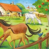 Sada obsahuje 2 samostatné puzzle s koňmi a životom na statku – ideálne pre prvé skladanie a rozširovanie predstavivosti.