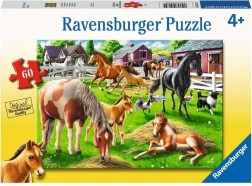 Ravensburger puzzle Šťastní kone je dokonalá zábava pre deti od 4 rokov. Obsahuje 60 dielikov, ktoré sľubujú hodiny zábavy plné kreativity a vzdelávacieho rozvoja.