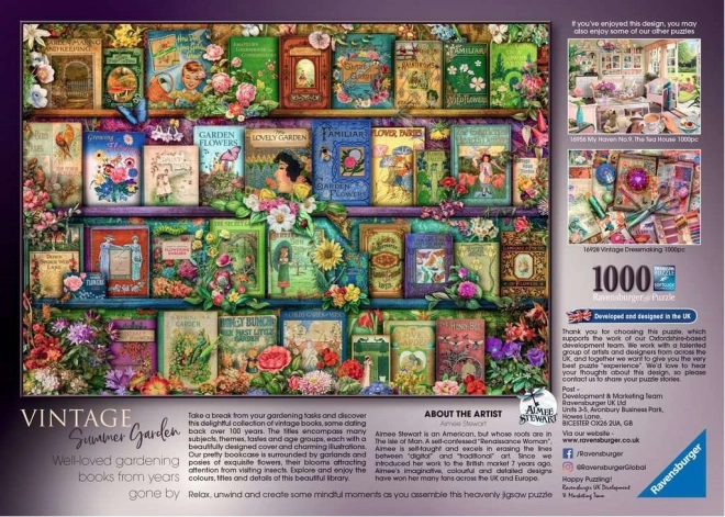 Užite si hodiny pokojnej zábavy s kvalitným puzzle Ravensburger. Motív letnej záhrady v knižničnom štýle poteší milovníkov literatúry, prírody aj detailných ilustrácií. Vďaka presnému výseku do seba dieliky perfektne zapadajú a skladanie je plynulé a príjemné.