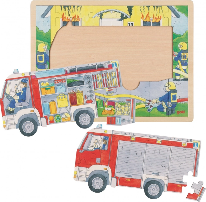 Toto kvalitné drevené puzzle od značky GOKI prináša realistickú scénu zásahu hasičov v dvoch vrstvách. Vďaka podkladovej doske so zvýšeným okrajom sa puzzle pohodlne skladá a ľahko ukladá. Vrstvené prevedenie umožňuje deťom nahliadnuť do útrob hasičského vozidla a spoznať, aké nástroje a výbavu hasiči používajú.