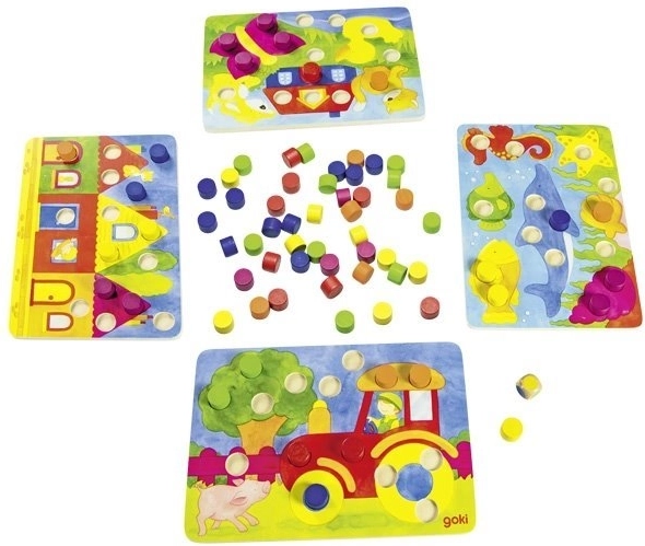 Najprv sa deti môžu naučiť vkladať farebné kamienky do obrázkov podľa vlastného potešenia a precvičovať prstíky a jemnú motoriku.
