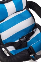 Bezpečnostné pásy držia dieťa v správnej polohe na sedadle a špeciálny kryt medzi nohami zabraňuje skĺznutiu. Ak dieťa nedosiahne na pedále, môže si nohy oprieť o sklopné stúpadlá, ktoré možno zložiť, aby neprekážali pri šliapaní.