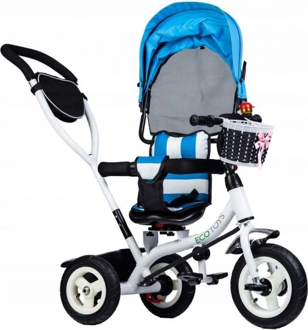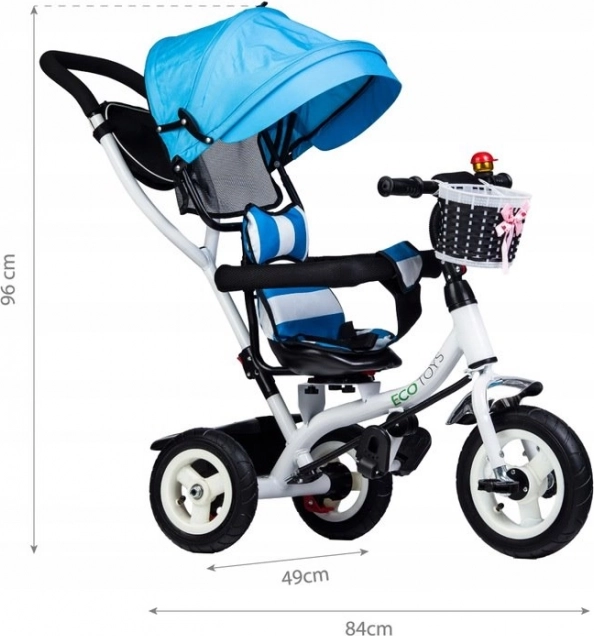 Táto trojkolka značky ECOTOYS je navrhnutá tak, aby poskytovala vášmu dieťaťu bezpečie a pohodlie počas hry aj na prechádzkach. Mäkké operadlo spolu s bezpečnostnými pásmi a ochrannými lištami zaisťujú, že dieťa zostane bezpečne na mieste. Sklopná strieška chráni deti pred nepriaznivými vplyvmi počasia a otočné sedadlo uľahčuje nastupovanie a vystupovanie.