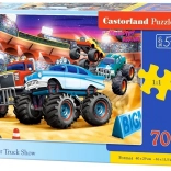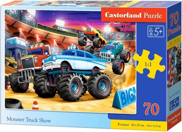Farebné detské puzzle Monster Truck Show so 70 dielikmi poteší malých staviteľov. Po zložení vznikne obrázok 40 × 29 cm. Kvalitné prevedenie a živé farby podporujú zábavu aj učenie – skladanie rozvíja jemnú motoriku, koncentráciu a predstavivosť.