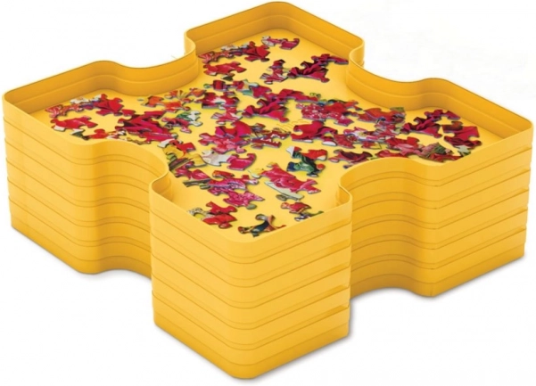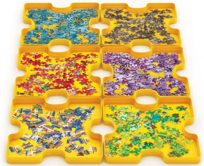 Praktický triedič na puzzle od značky EUROGRAPHICS pre pohodlné a prehľadné skladanie. Obsahuje 6 plastových misiek v tvare dielikov s rozmerom 20 × 20 cm, ktoré umožňujú triedenie podľa farieb a tvarov. Misky možno stohovať a jednoducho uložiť späť do krabice, takže šetria miesto a zabraňujú strate dielikov. Kapacita až 1000 dielikov.