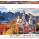 Zažite čaro jesene pri skladaní panoramatického puzzle s 1000 dielikmi, ktoré zachytáva malebnú krajinu Bavorska a legendárny Zámok Neuschwanstein. Tento zámok, známy svojou bohatou históriou a architektonickou krásou, je umiestnený na strmom kopci, čo z neho robí obľúbený cieľ turistov.