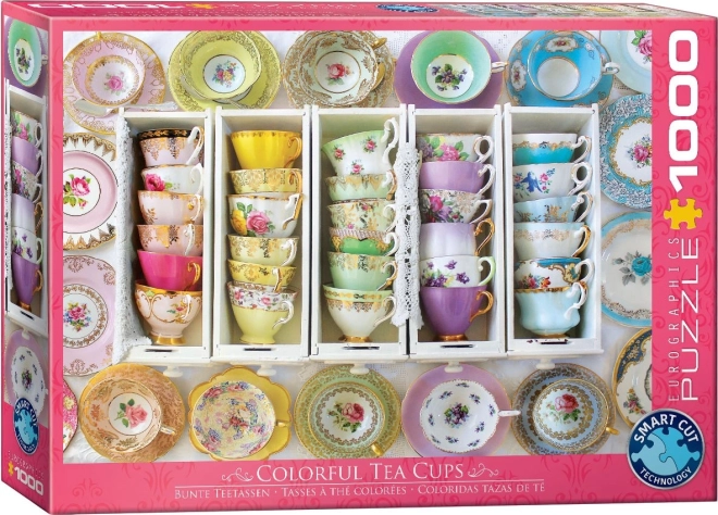 Užite si hodiny zábavy s krásnym motívom farebných čajových šálok od značky EUROGRAPHICS. Tento kvalitný puzzle set z 1000 dielikov ponúka originálny výsek bez štandardnej mriežky, vďaka čomu majú dieliky nezvyčajné tvary a skladanie je zábavne náročnejšie. Po zložení vznikne obraz s rozmerom cca 68 × 48 cm – ideálny na zarámovanie a výzdobu interiéru.