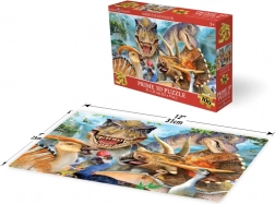 Zábavné 3D puzzle s motívom dino selfie poteší malých aj veľkých fanúšikov praveku. Vďaka 3D optickému efektu pôsobí obrázok plasticky a priestorovo, takže niektoré prvky vyzerajú bližšie a iné vzdialenejšie. Skladačka obsahuje 100 dielikov a po zostavení má rozmer cca 31 × 23 cm.