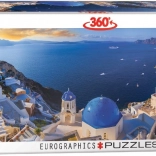 Panoramatické puzzle EUROGRAPHICS s motívom Santorini prinášajú atmosféru gréckych Kyklád v jedinečnom pohľade inšpirovanom 360° fotografiou. Vďaka 1000 dielikom si vychutnáte príjemnú a zároveň podnetnú skladačku, ktorá sa po dokončení stane elegantnou dekoráciou vášho interiéru.