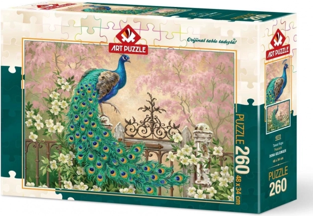 Užite si pokojné chvíle s krásnym motívom páva, ktorý vynikne v každom interiéri. Puzzle s 260 dielikmi je skvelou voľbou pre začiatočníkov aj pokročilejších skladateľov a rozvíja trpezlivosť, sústredenie aj jemnú motoriku.
