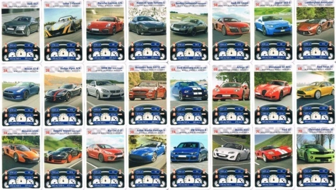 Zábavná kartová hra pre deti aj dospelých s témou športových vozidiel. Každá karta obsahuje reálne technické údaje (objem motora, počet valcov, hmotnosť, zrýchlenie 0–100 km/h, výkon a najvyššia rýchlosť). Balíček ponúka 32 kariet rozdelených do 8 kvartet – ideálne pre minimálne 3 hráčov a napínavé rodinné hranie.