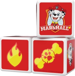 Červené potlače s Marshallom, hasičským štítom a symbolmi z obľúbeného seriálu motivujú k skladaniu obrázkov aj k rozprávaniu príbehov.
