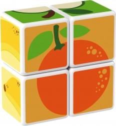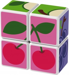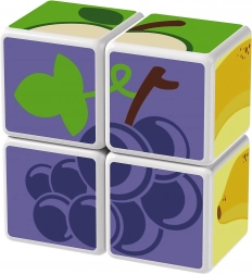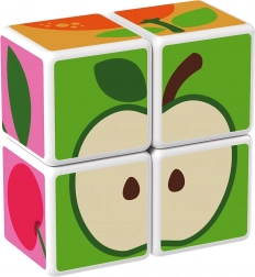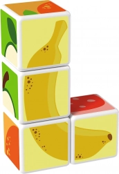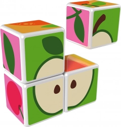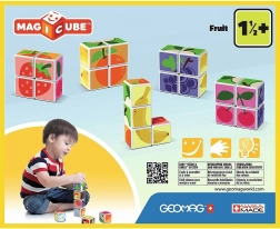 Plastové kocky s motívom ovocia. Kocky sú magnetické, deti z nich teda môžu skladať trojrozmerné objekty. Deti si môžu postaviť jablko, jahodu, hrozno, čerešne, banán, broskyňu alebo komín či ohradu pre zvieratká. Rozšírte možnosti hry zakúpením ďalších sád GEOMAG Magicube. Detské kocky Magicube podporujú koordináciu a motoriku, rozvíjajú fantáziu a logické myslenie a motivujú k rozprávaniu príbehov. Balenie obsahuje 4 magnetické kocky a 6 kariet s návrhmi na zostavenie zvierat. Vyrobené vo Švajčiarsku. ilustračné video magnetické kocky Geomag Magicube