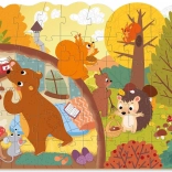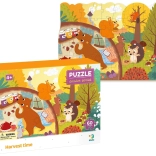 Objavte čaro jesene s puzzlami DODO Ročné obdobia: čas zberu. Táto farebná skladačka so 60 dielikmi rozvíja jemnú motoriku, logické myslenie a trpezlivosť. Vďaka obrysu po okraji sa deťom ľahšie skladá a výsledný obrázok s rozmerom 32 × 23 cm krásne vynikne.